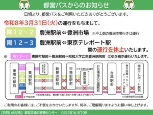 相次ぐ都営バスの路線休止・減便についてNew!!