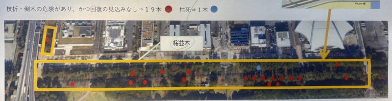 江東区内の都立辰巳の森緑道公園では、毎年地域住民の目を楽しませていた桜並木が被害に遭い、20本もの桜の木が伐採されることになってしまいました。