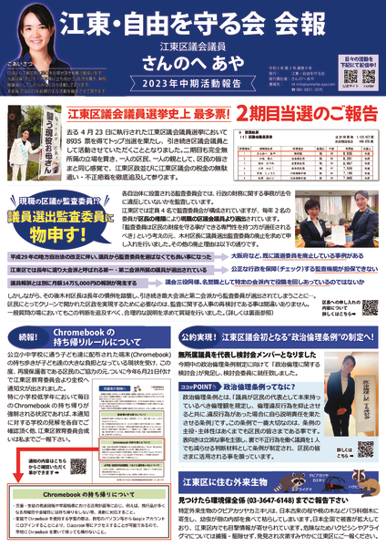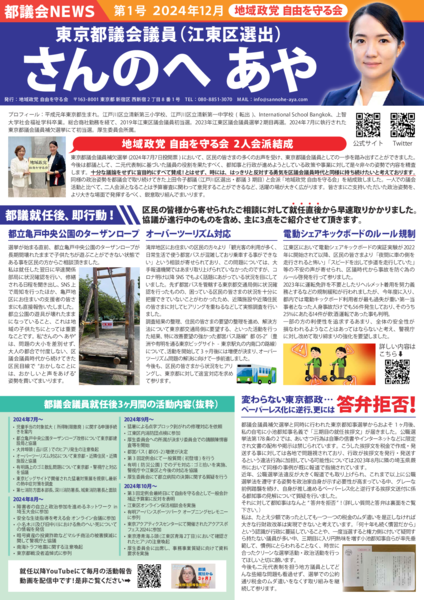 都議選2025 選挙チラシ さんのへあや 江東区選挙区